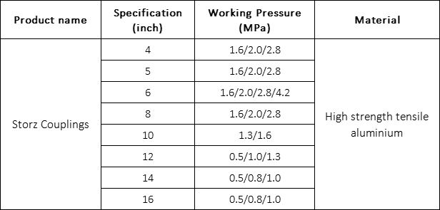 The Storz Couplings is the standard joint for our company's medium and low pressure large-caliber double-sided polyurethane hoses. It is fast to install and easy to disassemble, which greatly speeds up the laying of the pipeline.